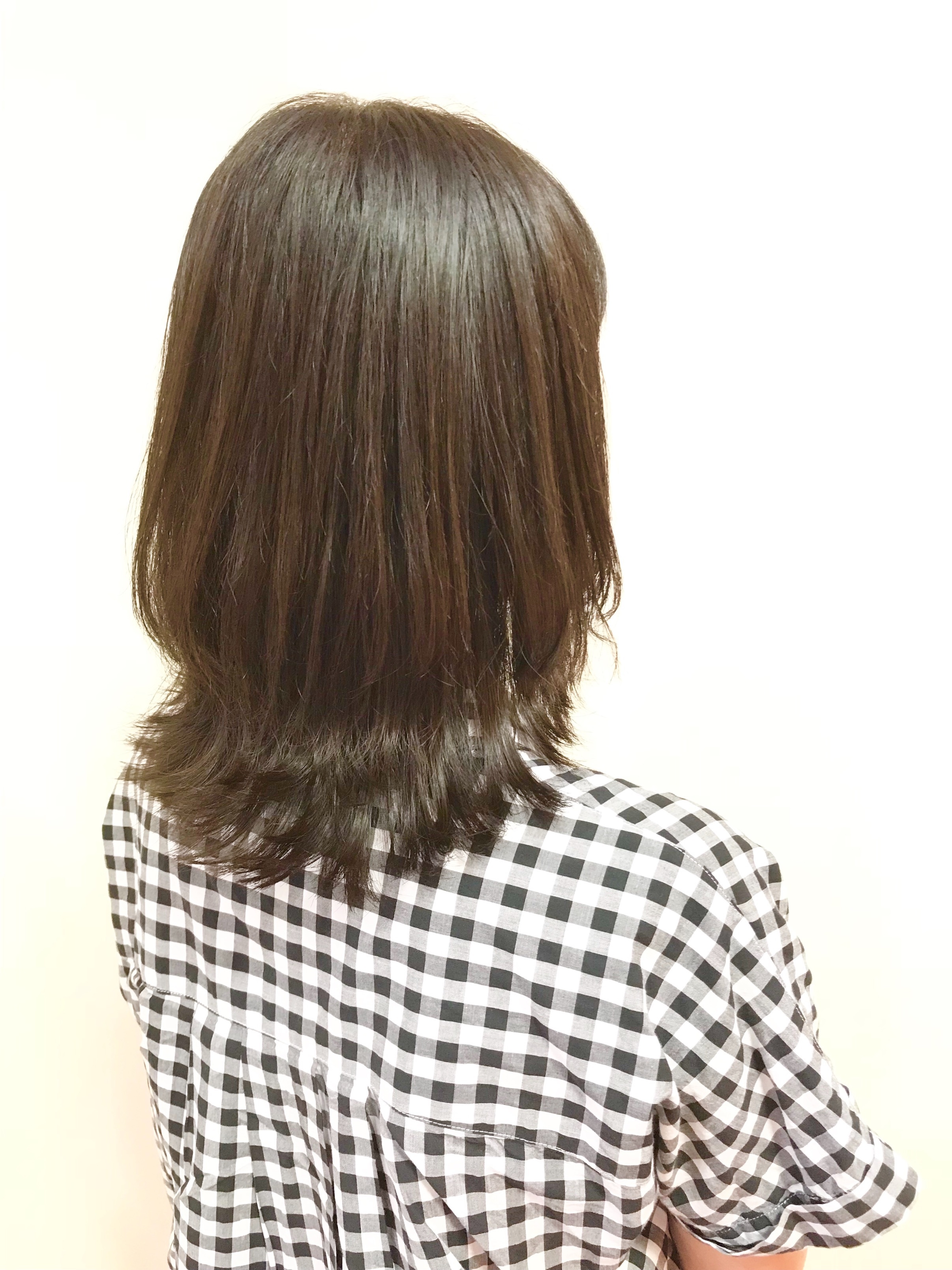 肩にあたる長さであえて外ハネのスタイルにチェンジいたしました。