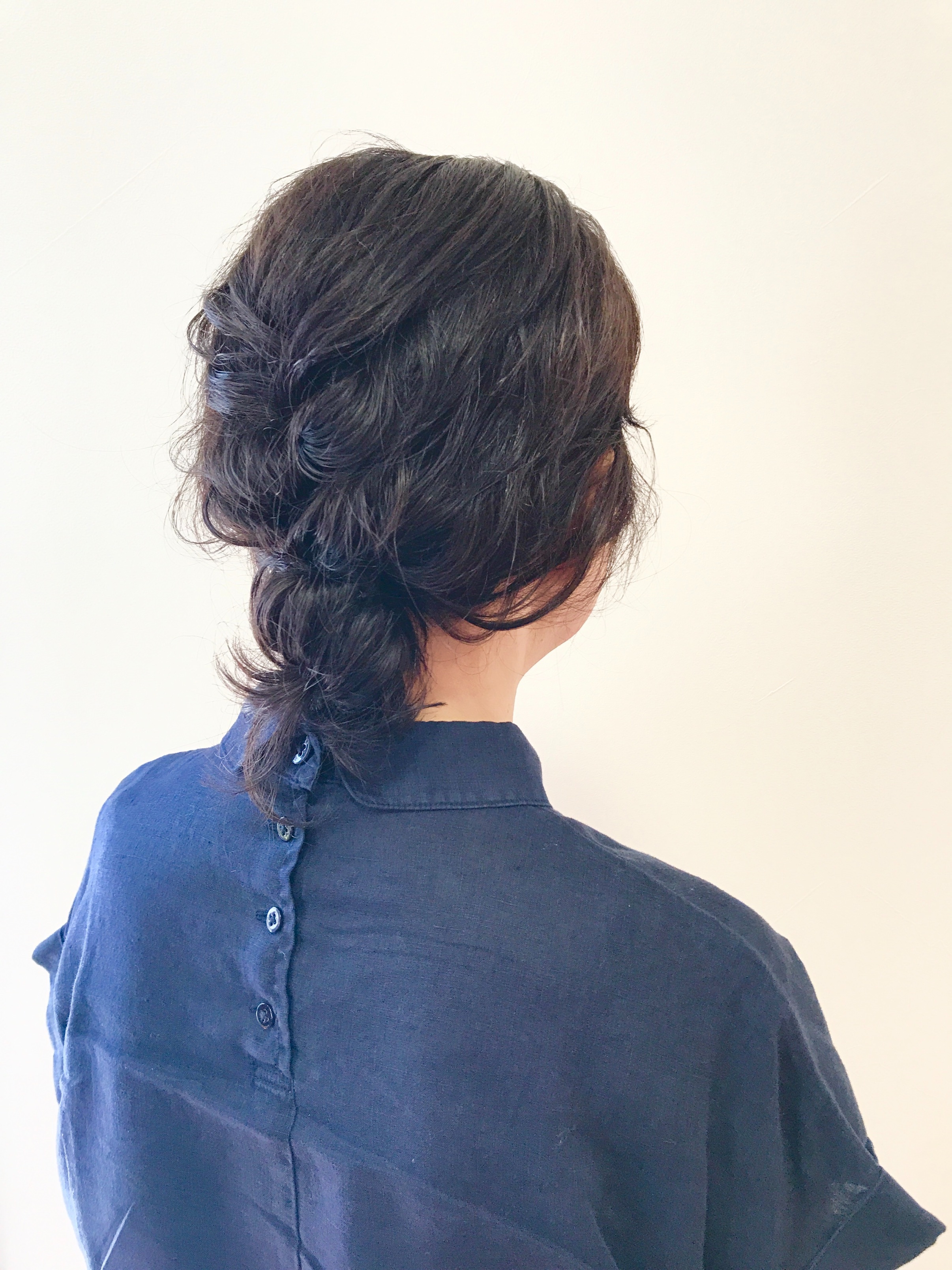 まとめた後に表面の髪をルーズに崩すと雰囲気が出ますよ。